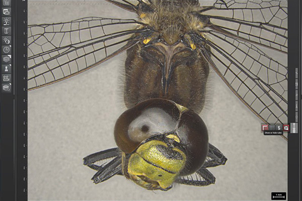 - Automatically calibrated images using data read from Leica microscopes and cameras; a scale bar indicates image size.